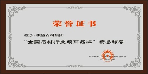 2012年10月9日,k8凯发官网荣获“全国石材行业领军品牌”荣誉称号,标志着k8凯发官网集团以国际先进的生产设备、强大的生产能力、精湛的生产工艺、充裕的板材库存、优良的产品品质、完善的管理团队,赢得了业界的广泛尊重和高度赞誉,并跻身中国石材行业十强行列,成为中国石材行业领军品牌。